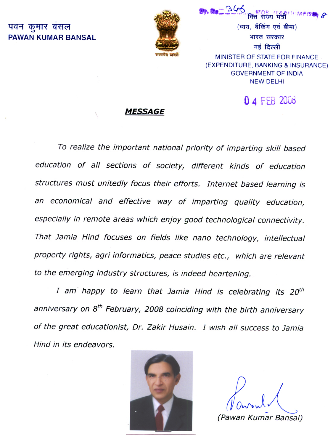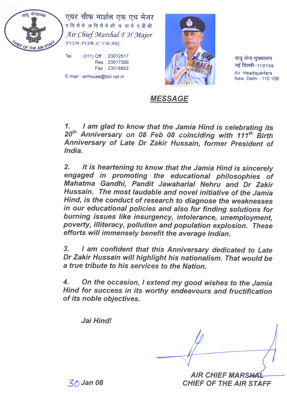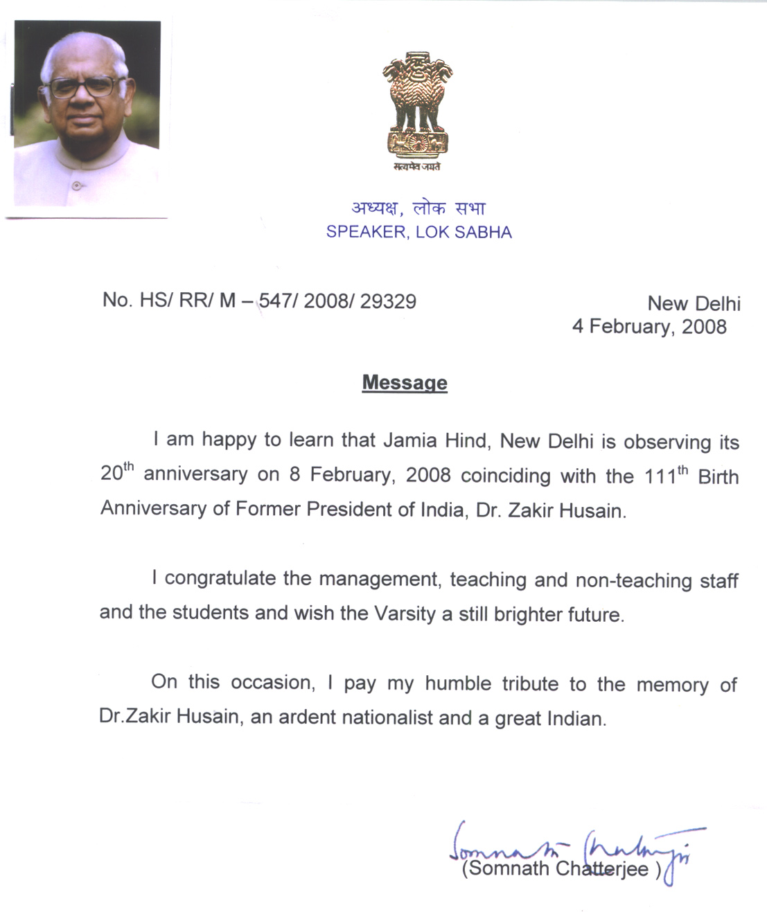 sent their good wishes on the occasion of Jamia Hind's 20th Anniversary. |